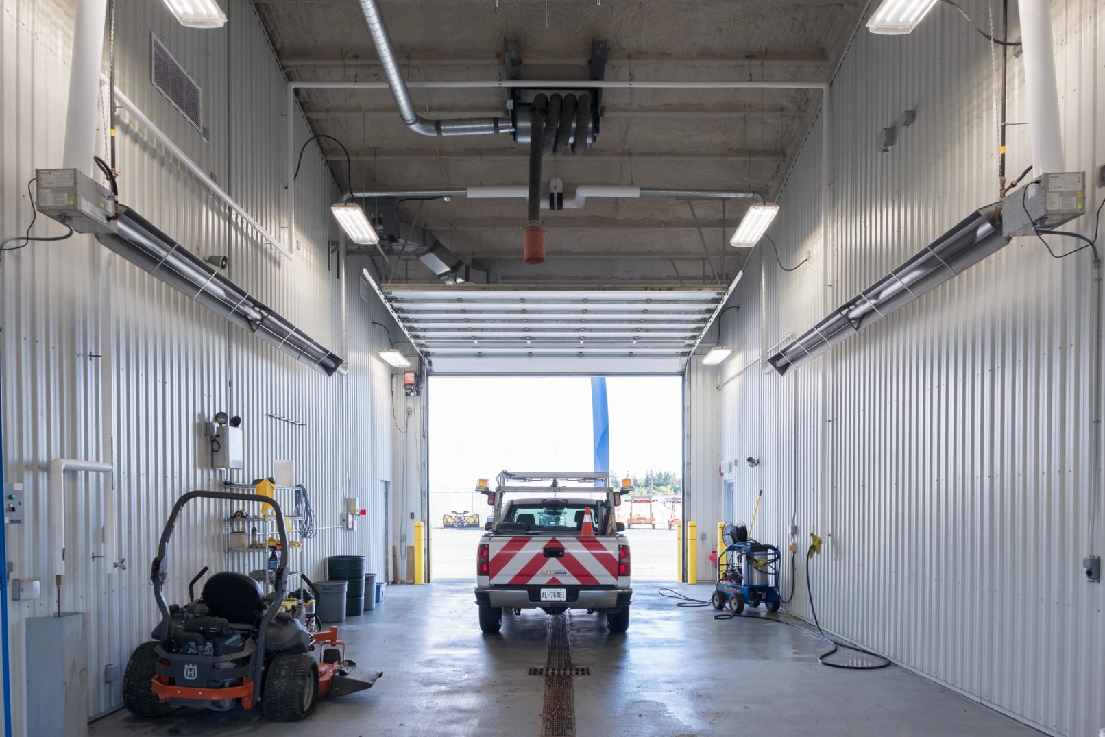 The project consisted of a 10,000 ft2 maintenance facility building, that is framed with conventional structural steel framing, heavy gauge metal stud wall system, metal siding and roof, founded on reinforced concrete foundations. The maintenance facility building was split the west side allocated to offices, boardroom & amenities, and the east side comprised of four maintenance garage bays with a masonry wall separation for two vehicles wash bays. There were major site developments on this 10-acre site, which included a septic system, an underground fire cistern, dry hydrant for emergency firefighting response capabilities, a rainwater cistern, a saltwater retention pond, a freshwater storm retention pond, highway grade asphalt paving and concrete sidewalks.