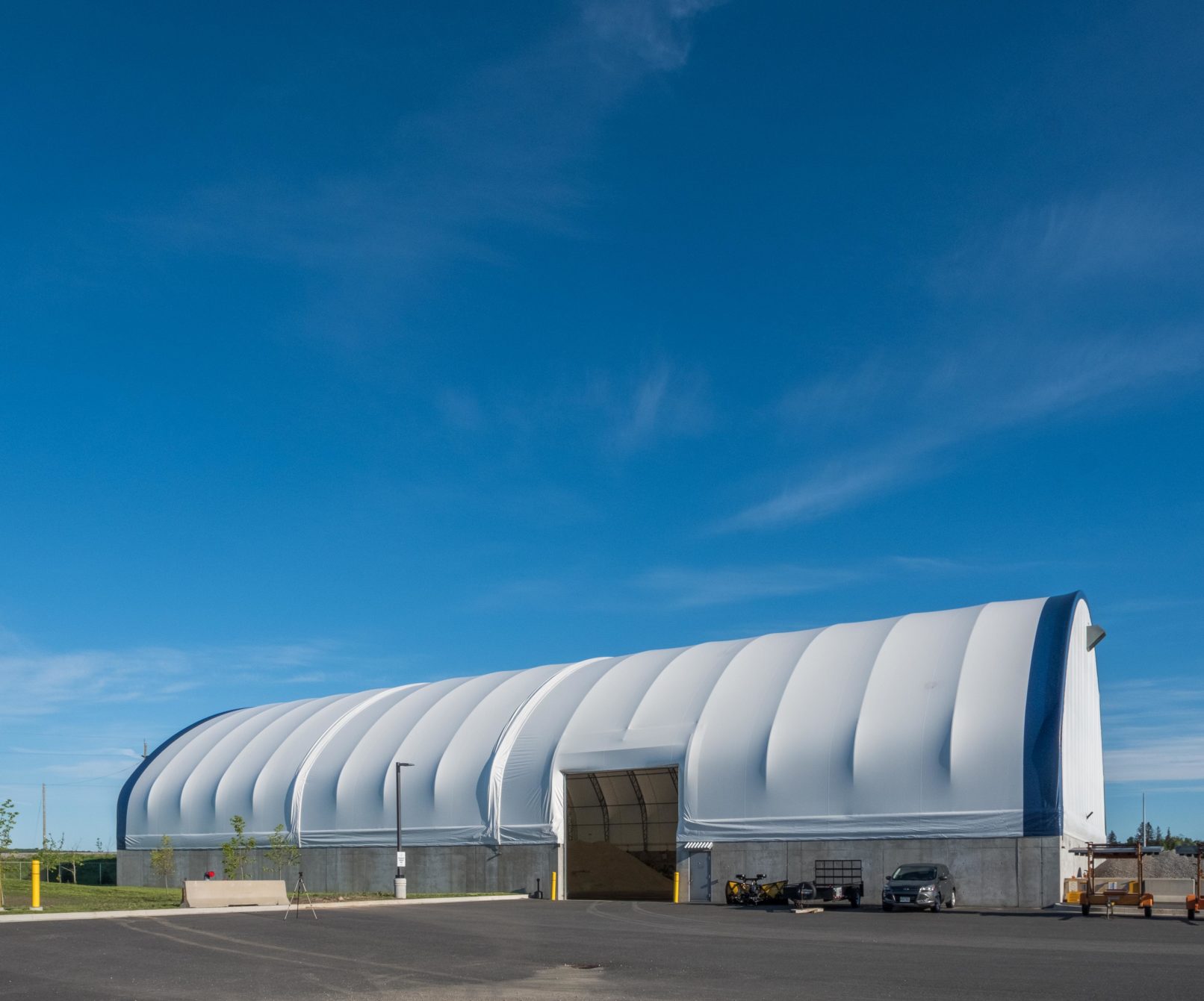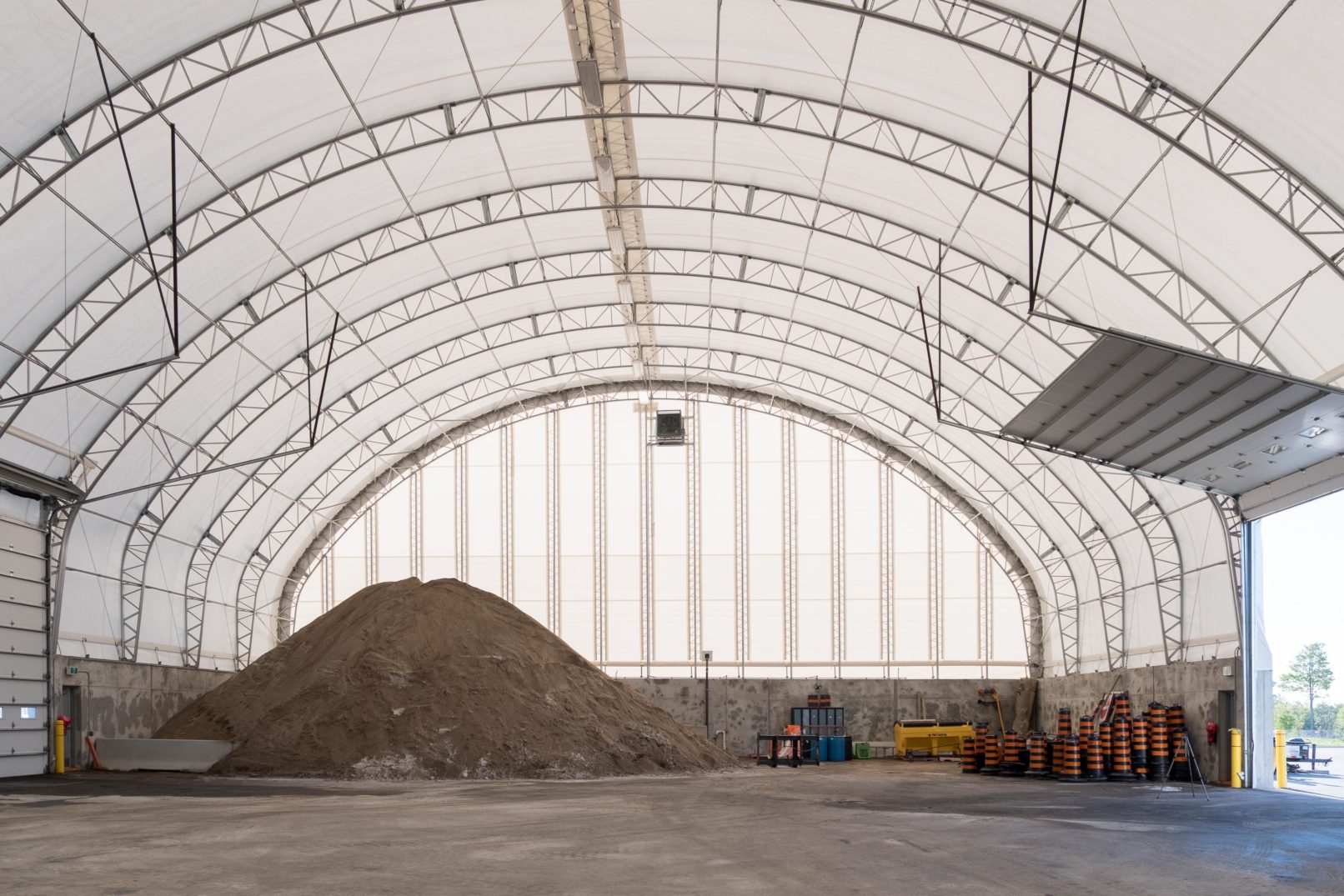 There was a late construction start in the later part of November 2014, and at about two thirds into the construction schedule, the 407 ECGP authorized the construction of Building B, which included a sand and salt storage dome covering approximately 19,000 ft2. This building was comprised of a reinforced concrete framed building, integrated with a tented, arched structural steel framed dome, with 10-foot-high above grade concrete walls. The dome at its peak towers over 45 feet above grade. JR Certus was able to bring uniquely fused project to substantial completion in less than 12 months, working directly with the Client, their respective Consultants, multiple Quality Control Inspectors, and elaborate chain of command, ensuring that quality, budget and schedule were maintained at the forefront.