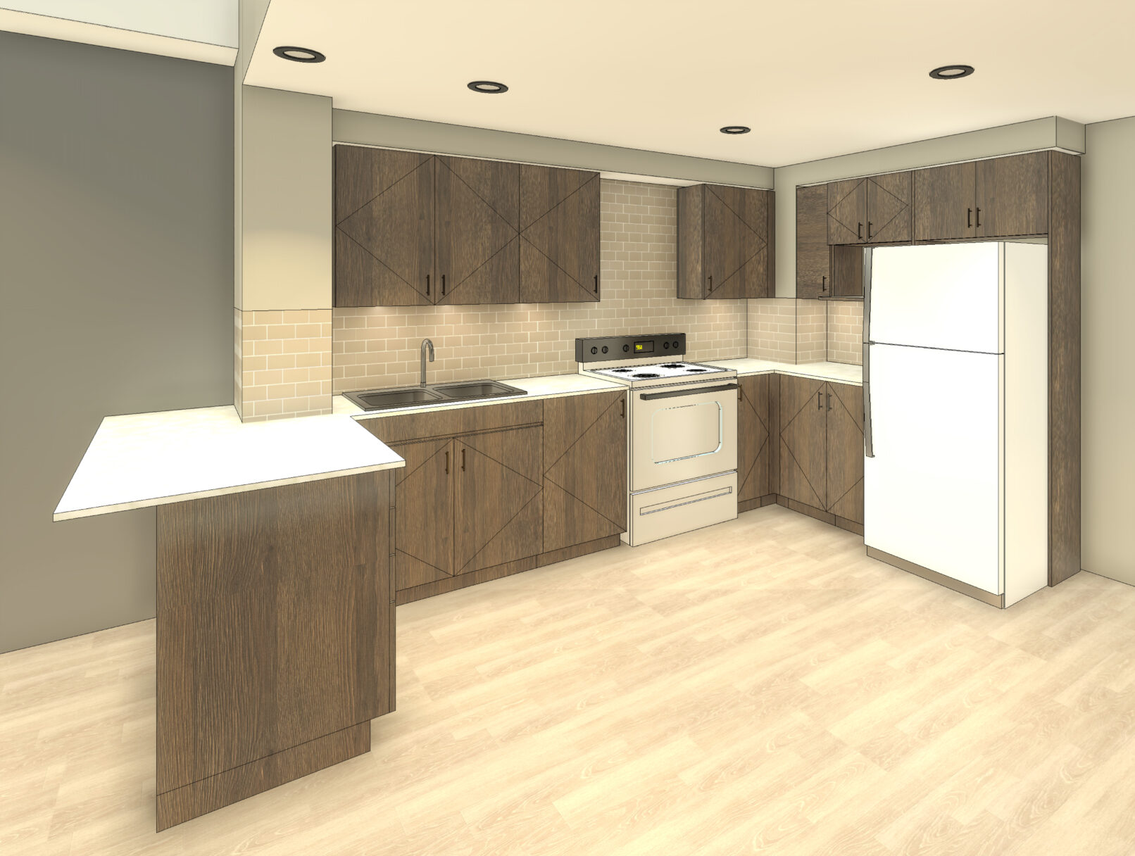 Construction of a new 50 unit, 4-storey affordable housing building. The project will consist of one, two and three bedroom units and will also contain approximately 5000ft2 of commercial space on the ground floor for a Community Services office and for future leasable space. The building is approximately 69,545ft2 and includes surface parking, green space / landscape area, rooftop amenity area, and playground. Although the project will not be LEED accredited, the project was designed with a LEED-like silver approach.
