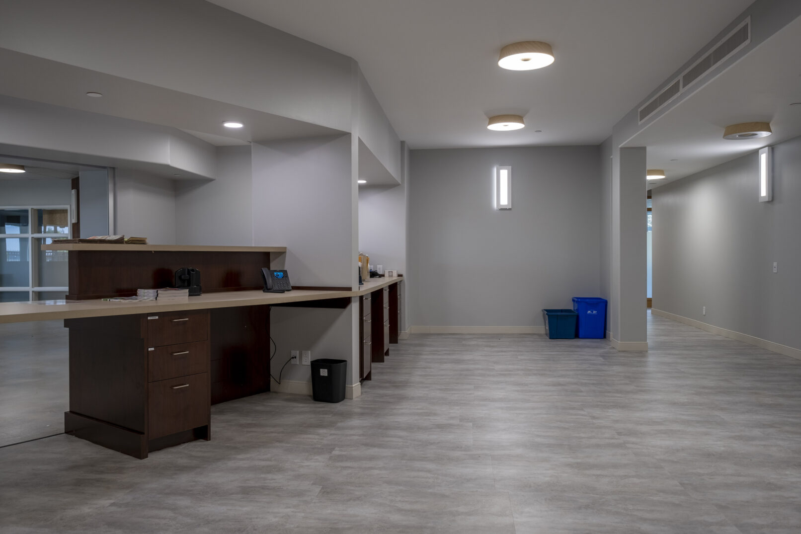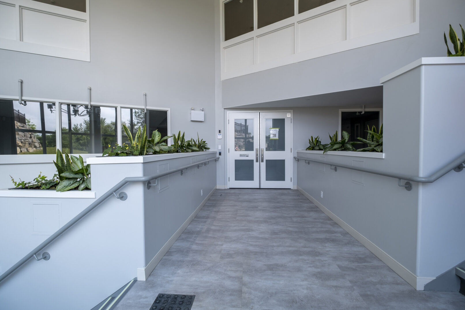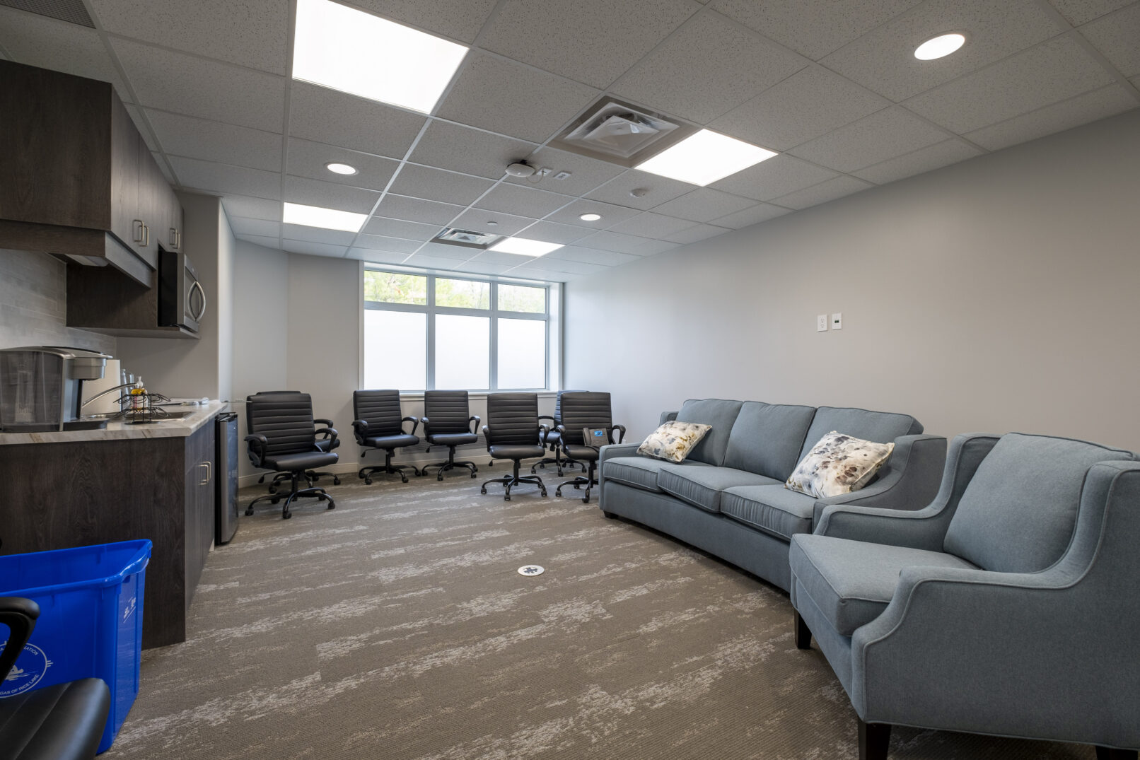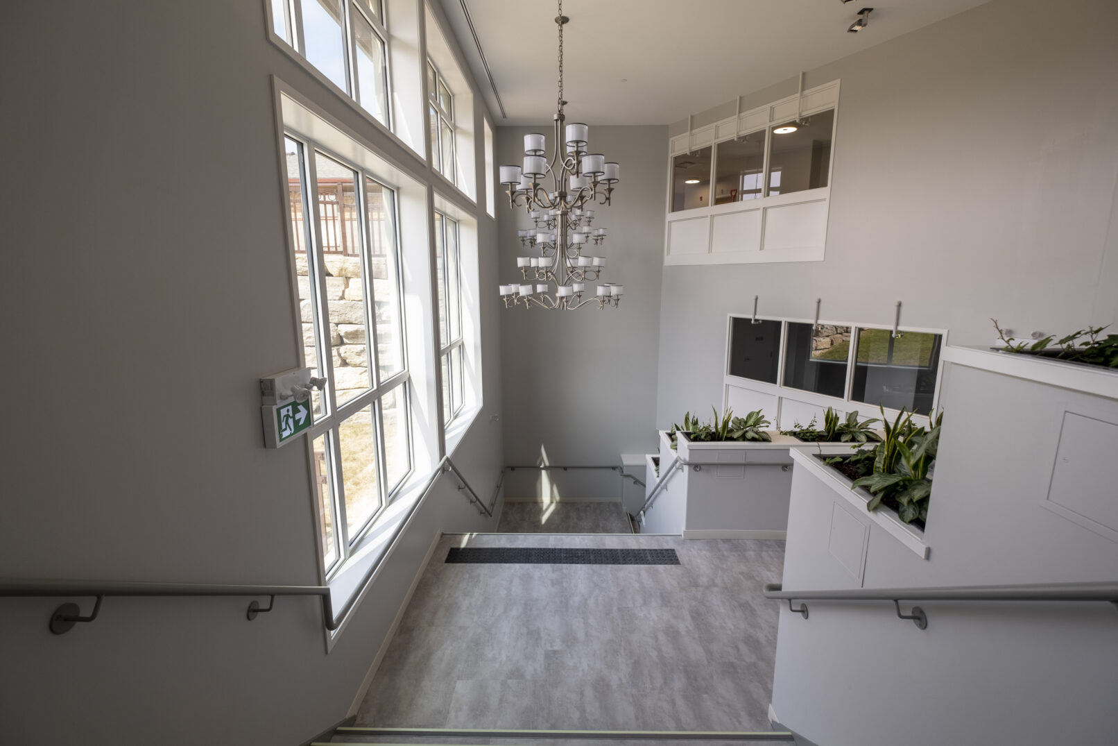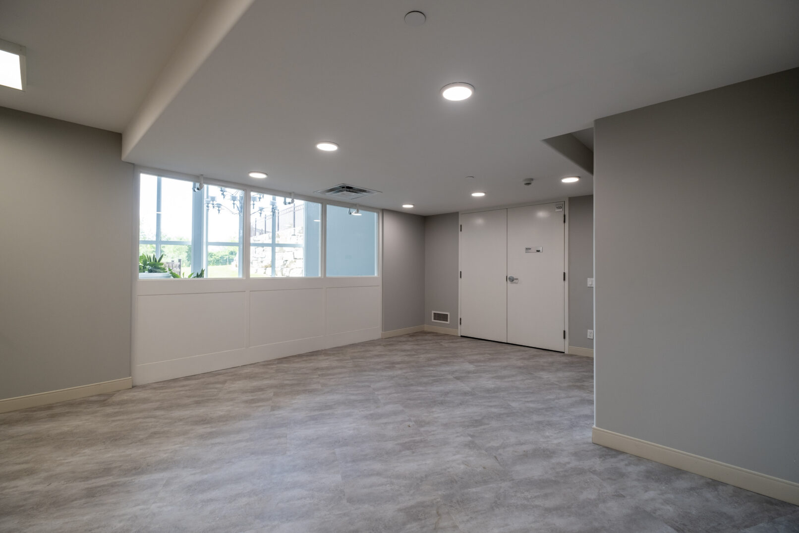 The site is beautifully characterized by the walkout basement, inclusive of naturalized landscaping with limestone boulder retaining walls, fire pit with coloured and exposed aggregate concrete plaza deck for ceremonial events, outdoor stage area, outdoor basketball court, and an asphalt paving walking path that overlooks the ravine lot backing towards Rice Lake. This energy efficient building included a building envelope with fiberglass windows, aluminum siding reciprocating a wood plank charm, and EIFS which was detailed to replicate the existing masonry veneer on existing building. On the interior of the building the millwork, floor and wall finishes were completed with naturalized earth tone colours and textures, to bring the feel of the outdoors into the building spaces. In the event of a power failure, the site is backed up with propane fueled emergency generators that allow the operation of the mechanical systems, elevator, emergency lighting, sprinkler, and fire alarm systems. As the project included a large Cash Allowance of $1.23-million, JR Certus was successful in working together with Hiawatha First Nation and the Team of Consultants to ensure design development for key items were completed, coordinated, and scheduled to minimize impact on the progression of the project and overall schedule. The Cash Allowance included key elements of the project such as the planter boxes at the grand stair, landscaping and retaining walls, youth centre building and site upgrades, water features.