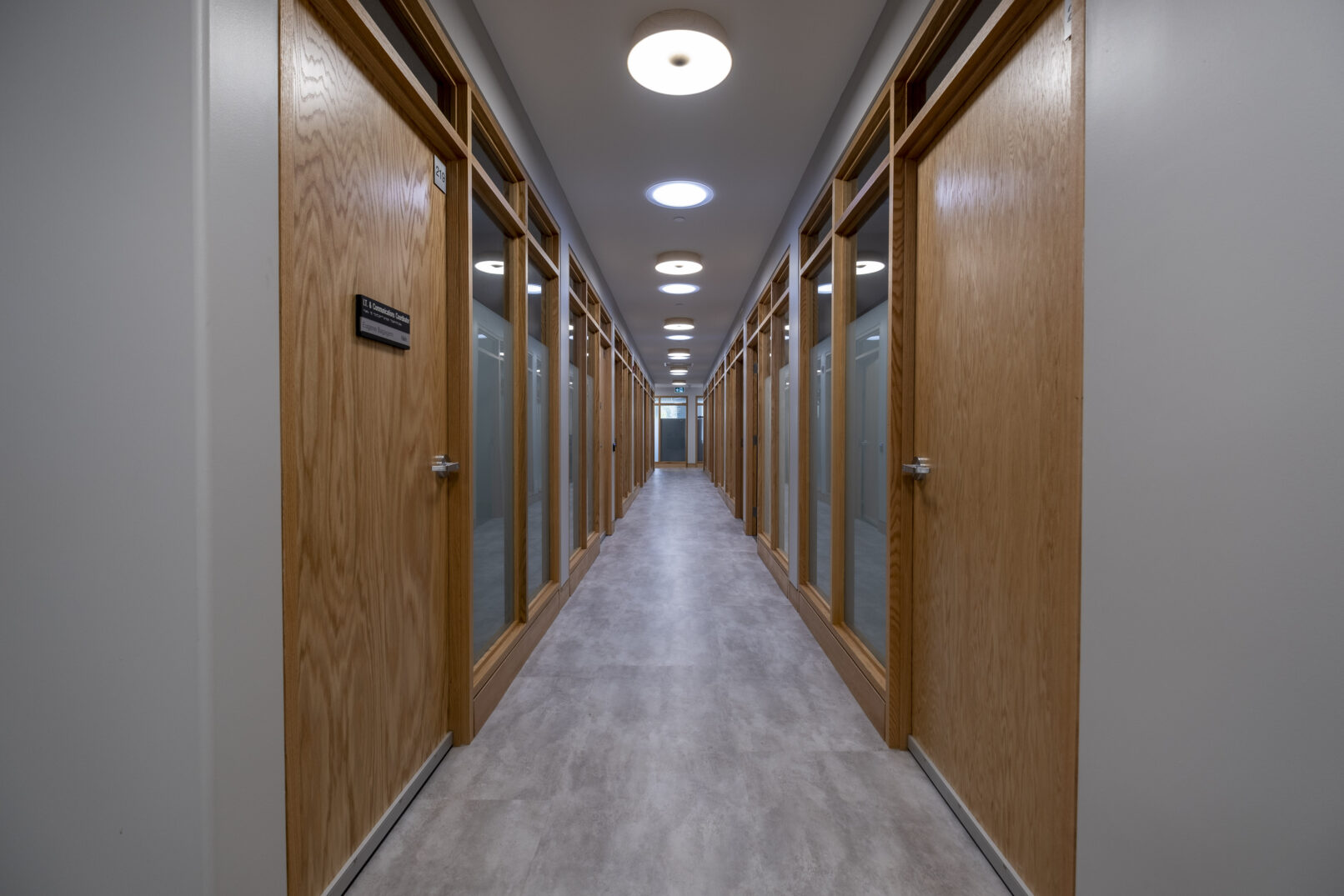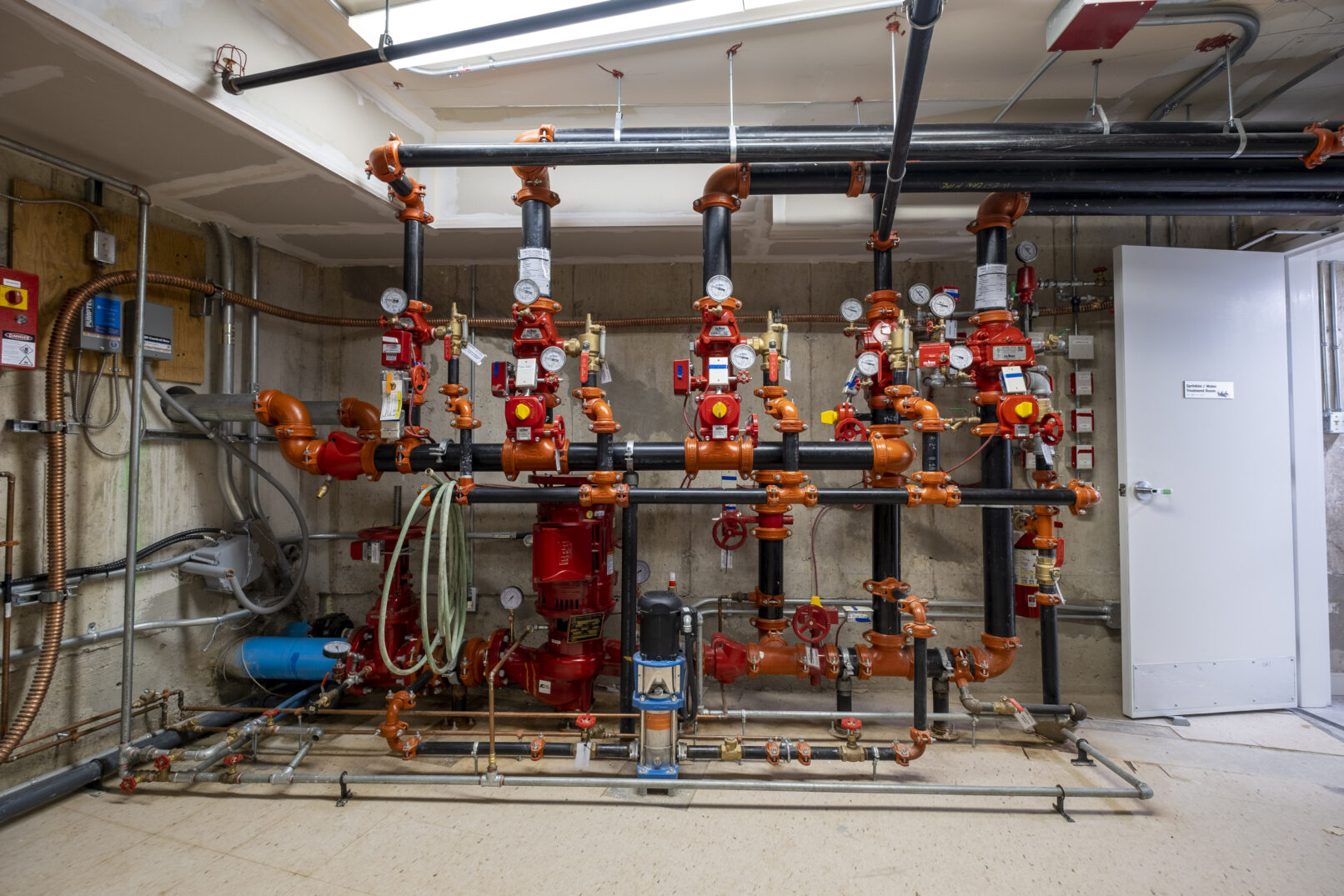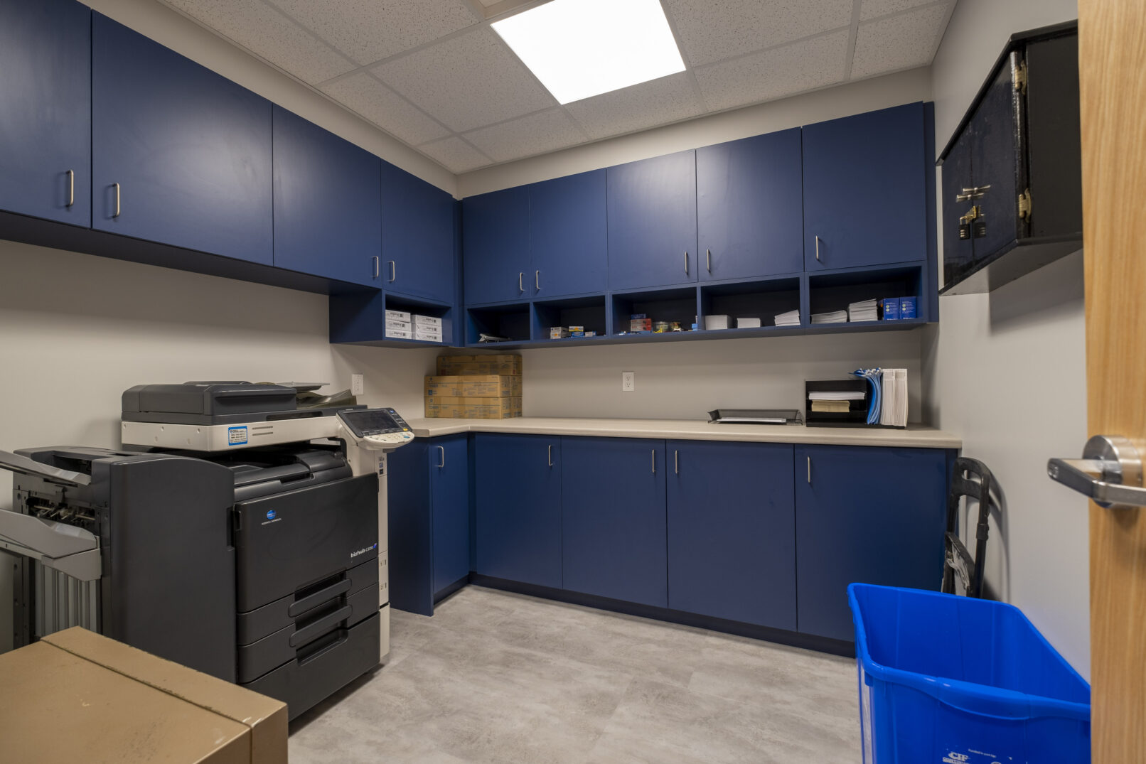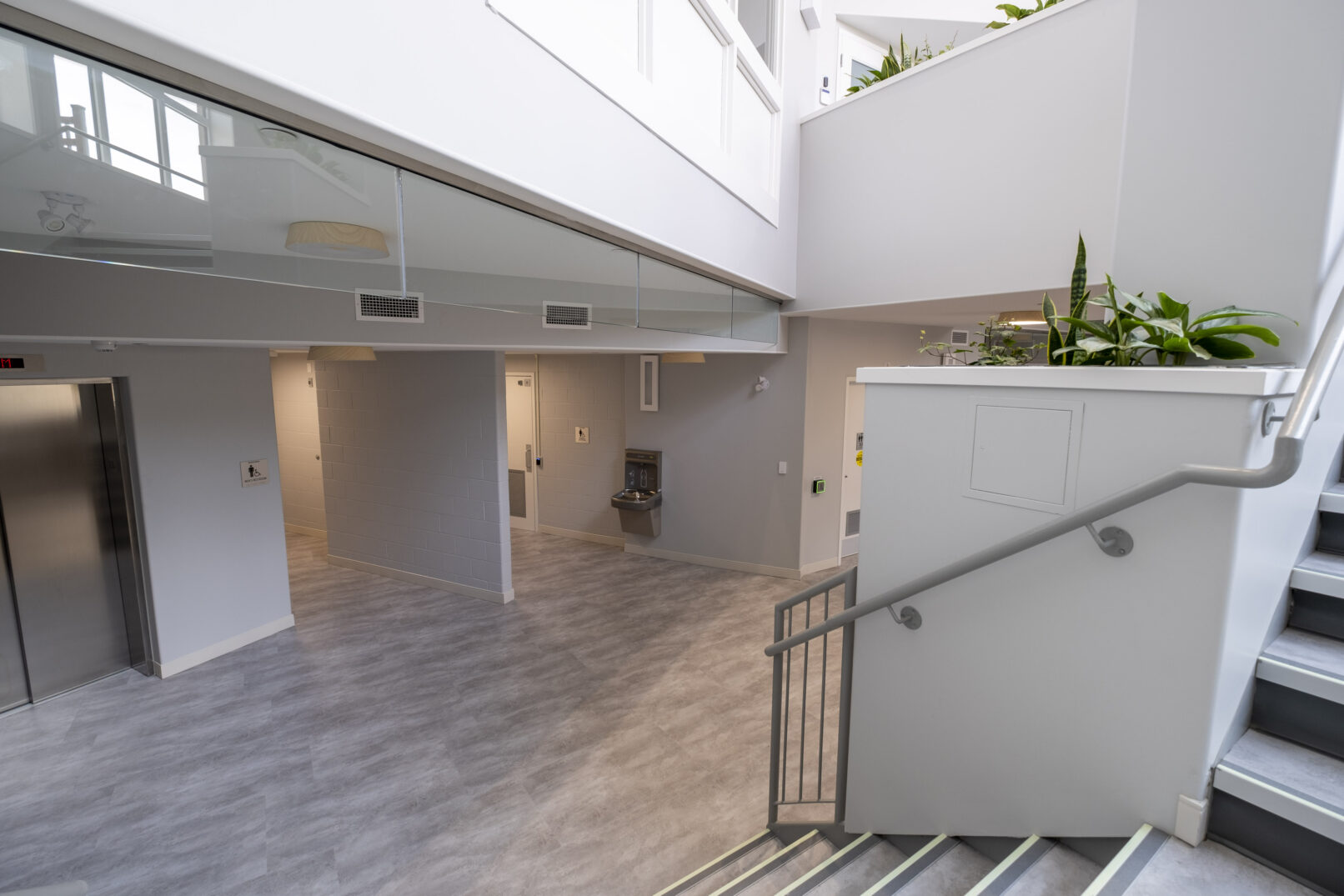 The site is beautifully characterized by the walkout basement, inclusive of naturalized landscaping with limestone boulder retaining walls, fire pit with coloured and exposed aggregate concrete plaza deck for ceremonial events, outdoor stage area, outdoor basketball court, and an asphalt paving walking path that overlooks the ravine lot backing towards Rice Lake. This energy efficient building included a building envelope with fiberglass windows, aluminum siding reciprocating a wood plank charm, and EIFS which was detailed to replicate the existing masonry veneer on existing building. On the interior of the building the millwork, floor and wall finishes were completed with naturalized earth tone colours and textures, to bring the feel of the outdoors into the building spaces. In the event of a power failure, the site is backed up with propane fueled emergency generators that allow the operation of the mechanical systems, elevator, emergency lighting, sprinkler, and fire alarm systems. As the project included a large Cash Allowance of $1.23-million, JR Certus was successful in working together with Hiawatha First Nation and the Team of Consultants to ensure design development for key items were completed, coordinated, and scheduled to minimize impact on the progression of the project and overall schedule. The Cash Allowance included key elements of the project such as the planter boxes at the grand stair, landscaping and retaining walls, youth centre building and site upgrades, water features.