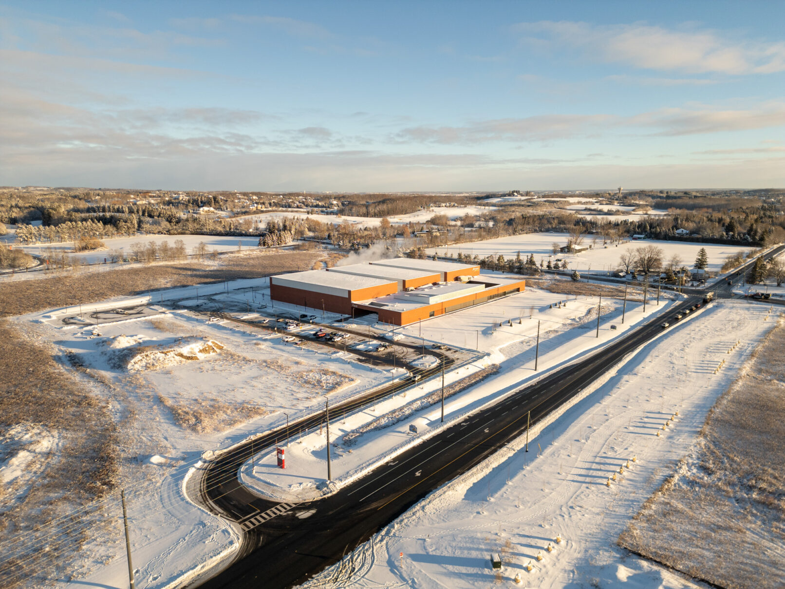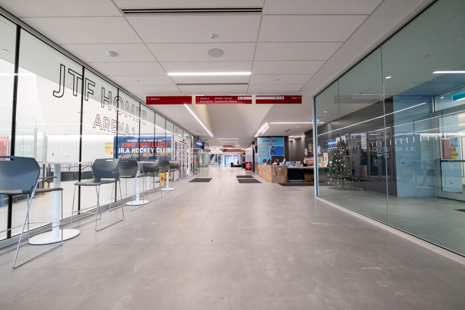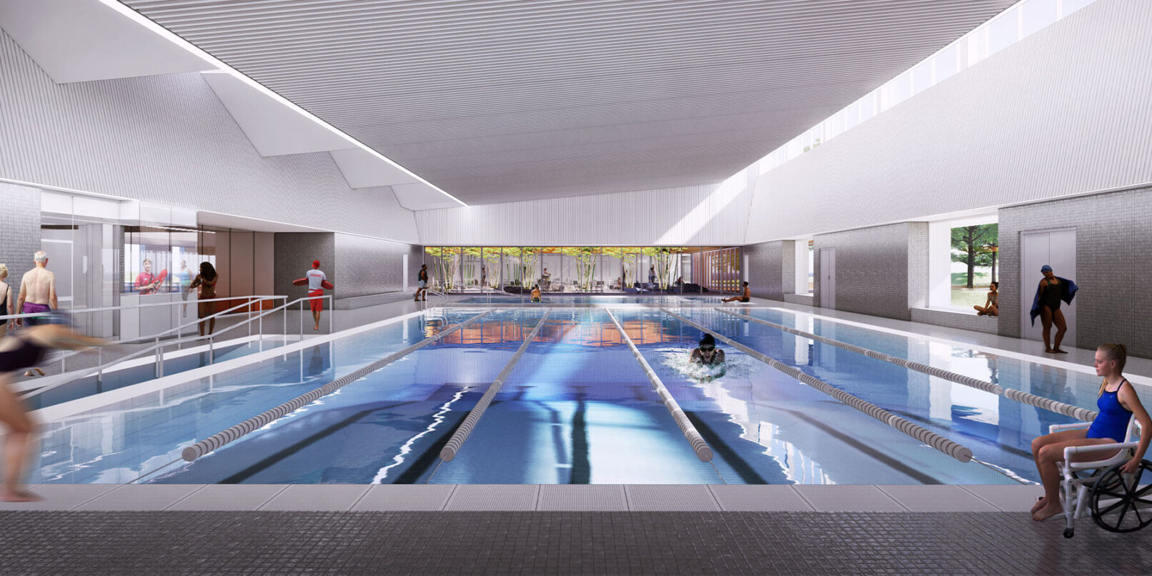 Construction of a new 11,600m2 recreational centre to supplement the Township’s growing demand for recreational programming. The new recreation centre will be built on approx. 25 acres of land adjacent to the Seneca College King Campus. The facility is a single storey recreational complex which includes two (2) NHL sized ice rinks, one of which will have the capacity for approx. 450 spectators through a mixture of fixed seating and standing room, an aquatic hall including an indoor six (6) lane lap pool and a separate leisure pool, fitness & athletic spaces, multi purpose community rooms, offices, administrative spaces and a landscaped courtyard.