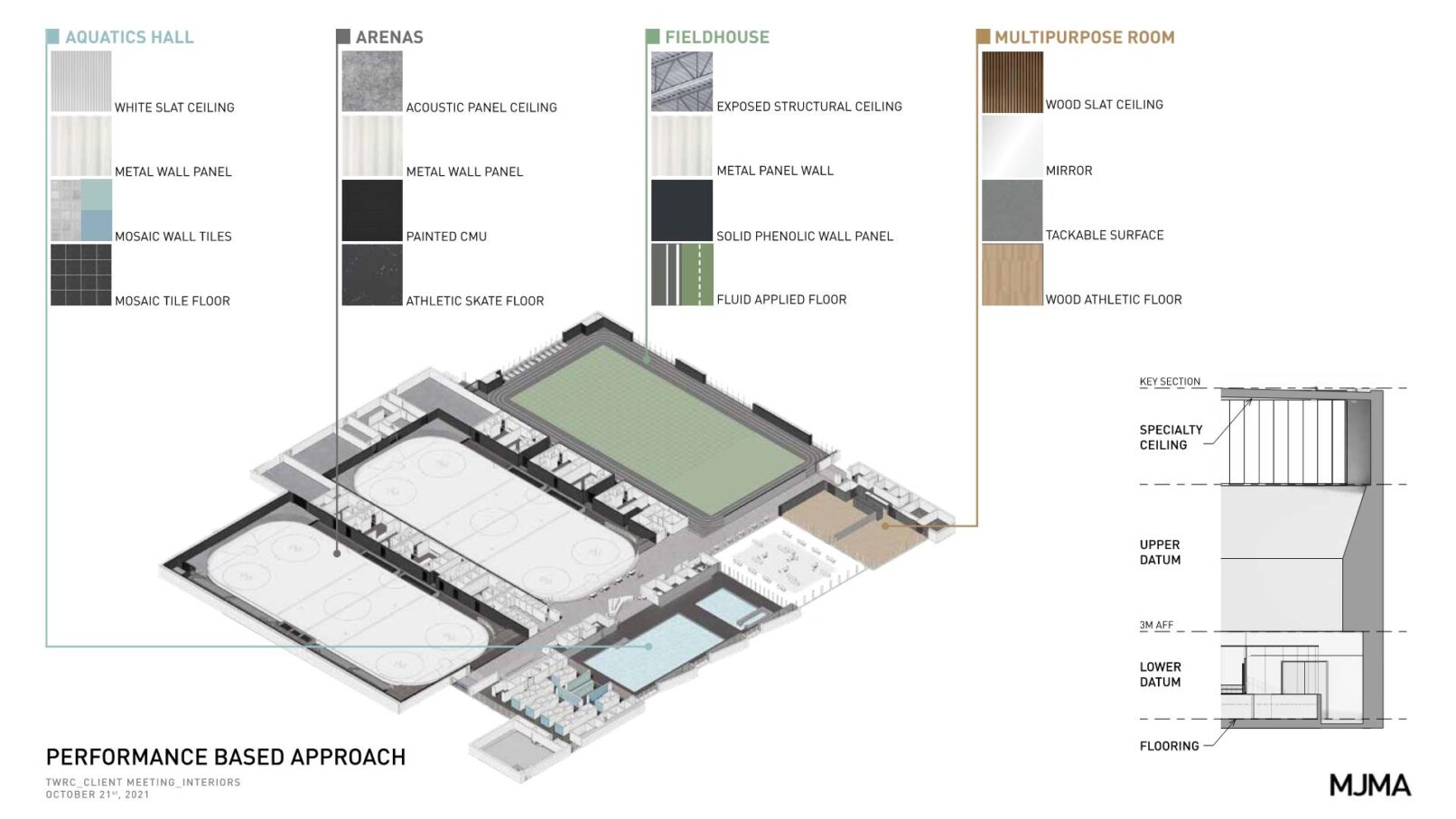 Though the project is not targeting LEED accreditation, the project has been designed with an emphasis on sustainable design features such as an open-loop geo-exchange field, high performance envelope and roof assemblies, natural ventilation and heat recovery systems, energy efficient lighting and equipment and low water consumption processes.