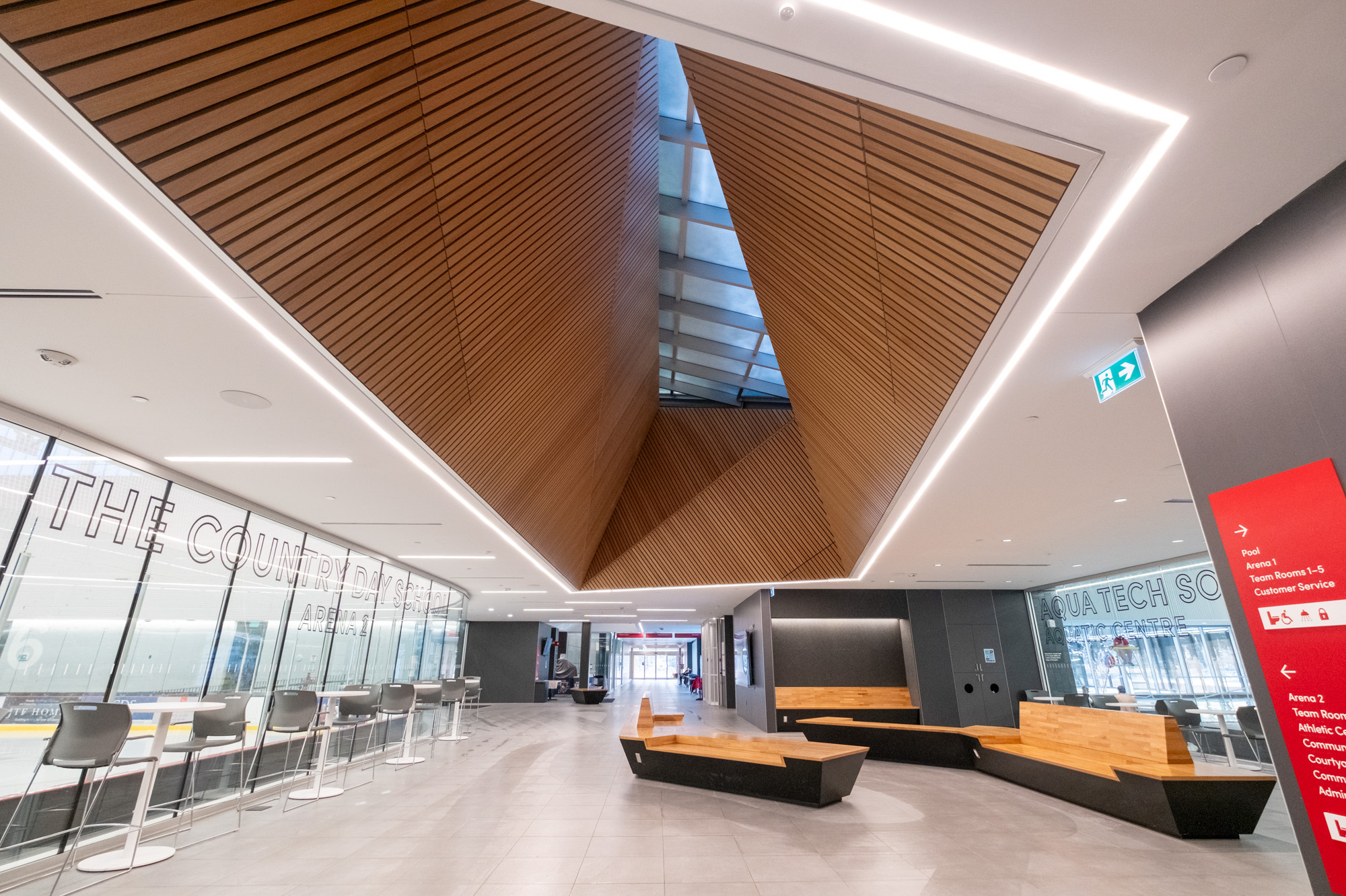 Construction of a new 11,600m2 recreational centre to supplement the Township’s growing demand for recreational programming. The new recreation centre will be built on approx. 25 acres of land adjacent to the Seneca College King Campus. The facility is a single storey recreational complex which includes two (2) NHL sized ice rinks, one of which will have the capacity for approx. 450 spectators through a mixture of fixed seating and standing room, an aquatic hall including an indoor six (6) lane lap pool and a separate leisure pool, fitness & athletic spaces, multi purpose community rooms, offices, administrative spaces and a landscaped courtyard.