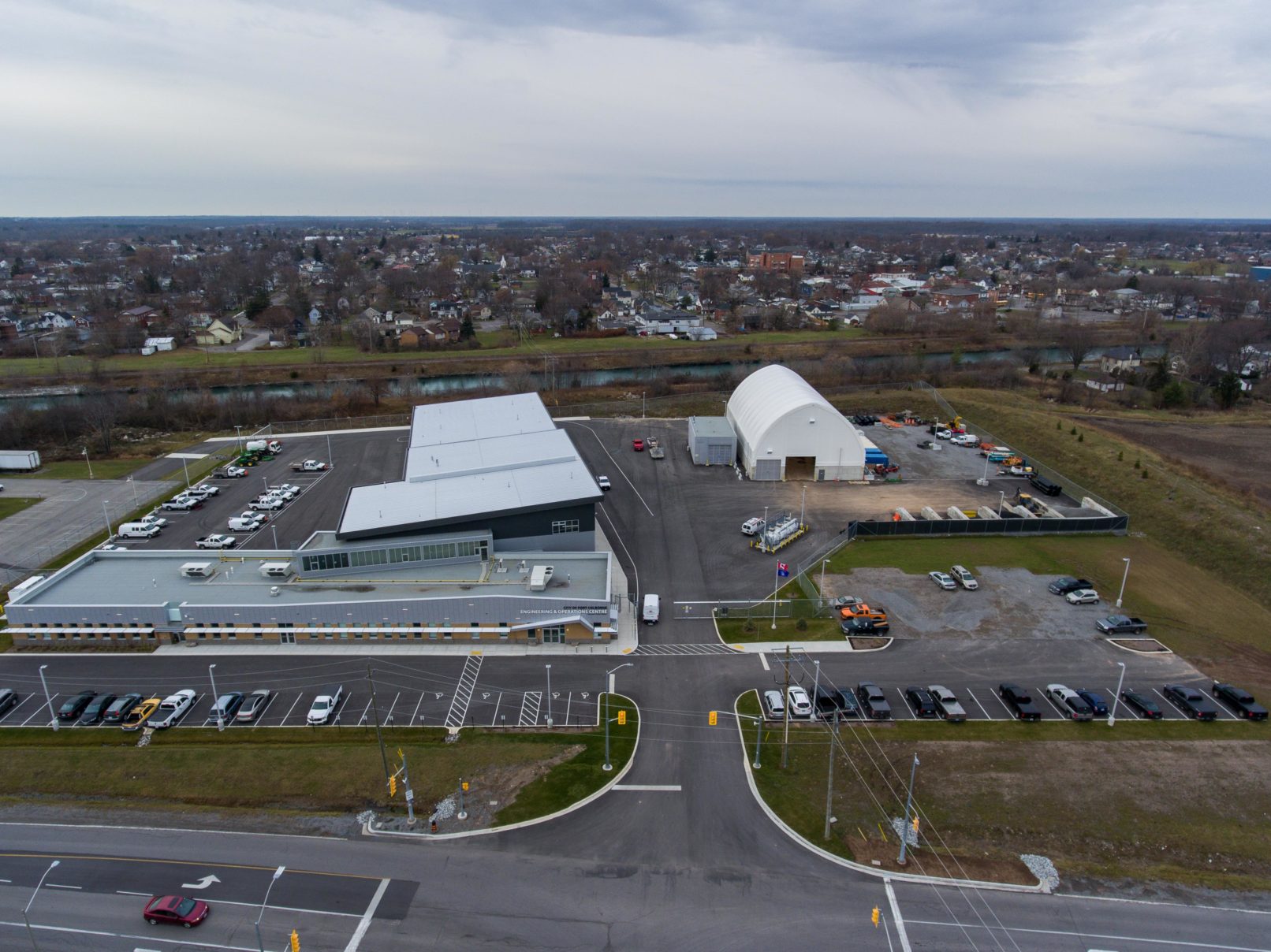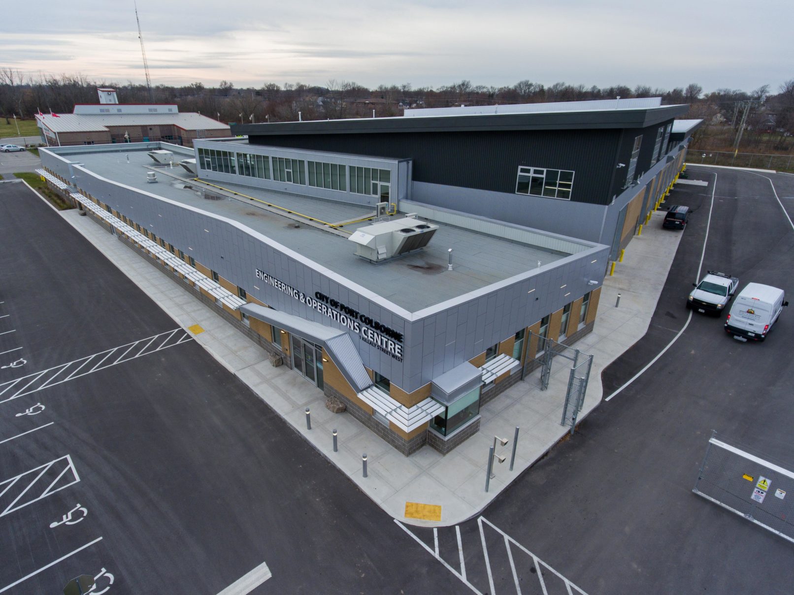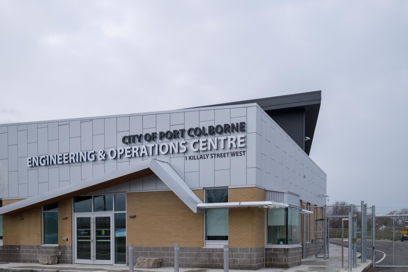 Construction of a new operation centre for the City of Port Colborne. This new facility centralizes the maintenance operations of the City (Parks Department and Public Works yards), which previously carried out from two locations. The main facility consists of a 12,100 ft2 administration building and a 24,700 ft2 operations building, with satellite structures of approximately 11,000 ft2 for a salt storage dome and wash bay building.