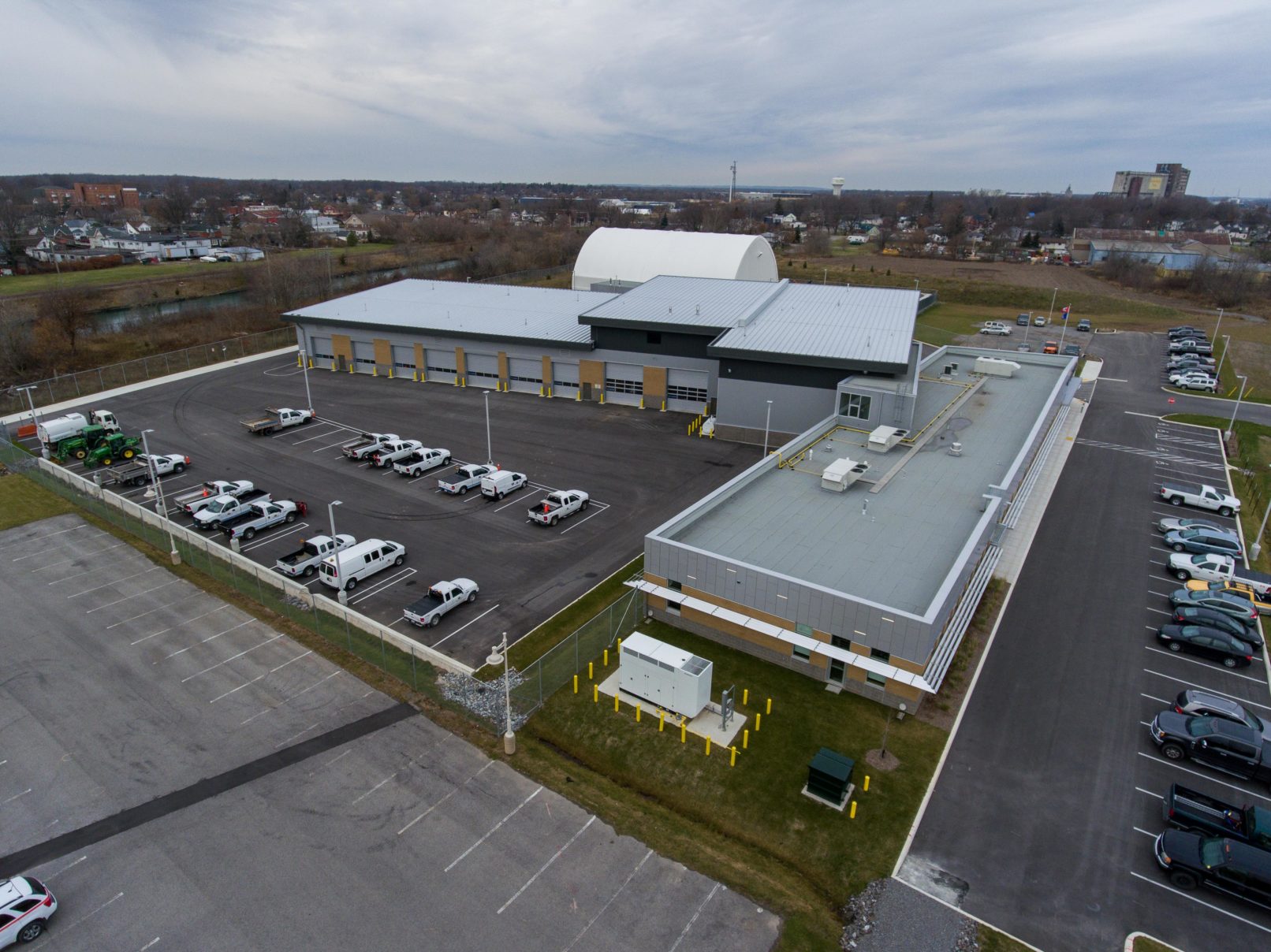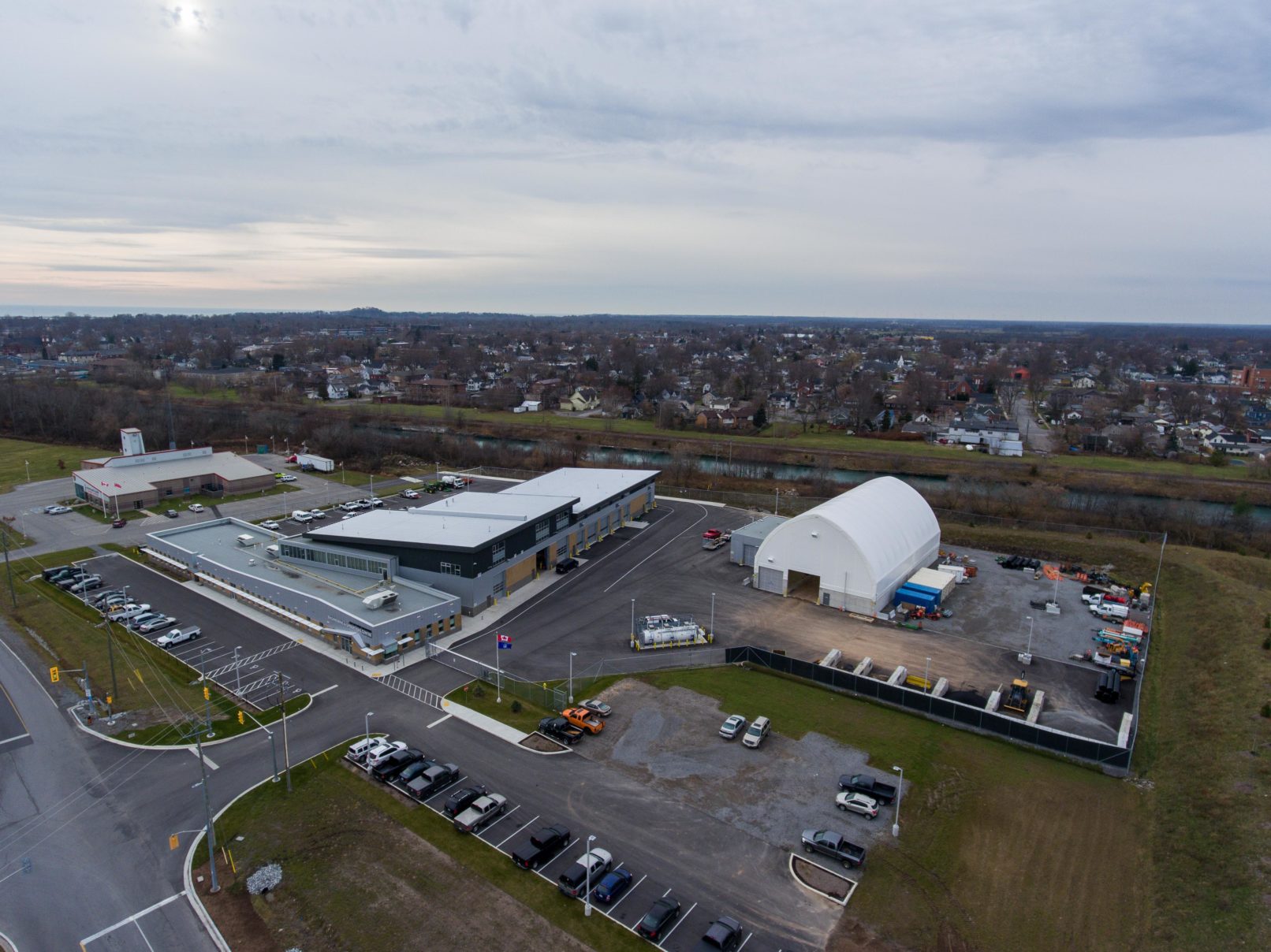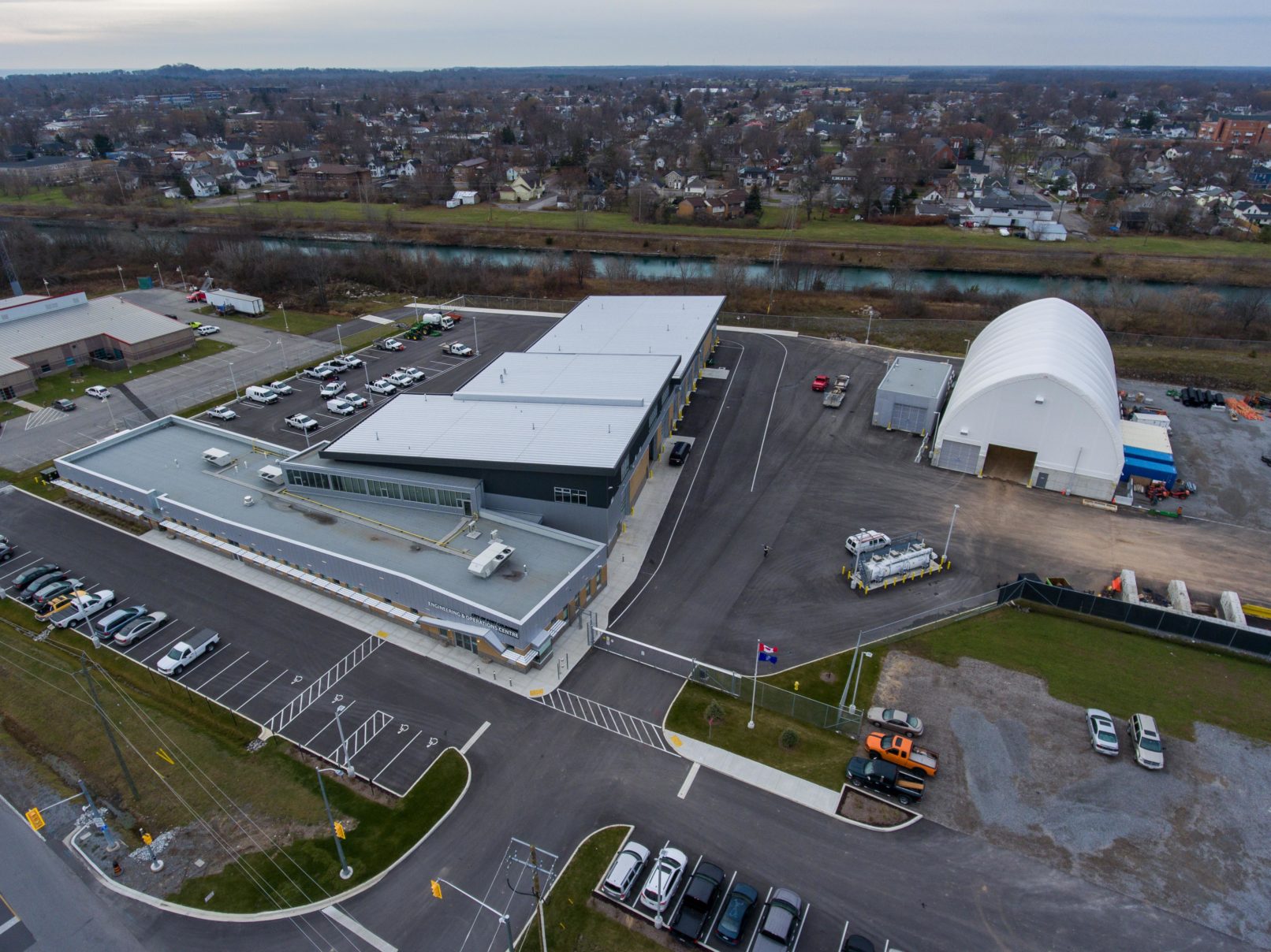Construction of a new operation centre for the City of Port Colborne. This new facility centralizes the maintenance operations of the City (Parks Department and Public Works yards), which previously carried out from two locations. The main facility consists of a 12,100 ft2 administration building and a 24,700 ft2 operations building, with satellite structures of approximately 11,000 ft2 for a salt storage dome and wash bay building.