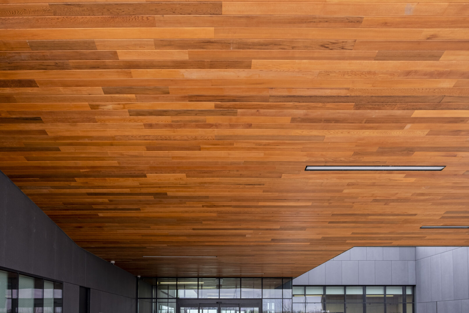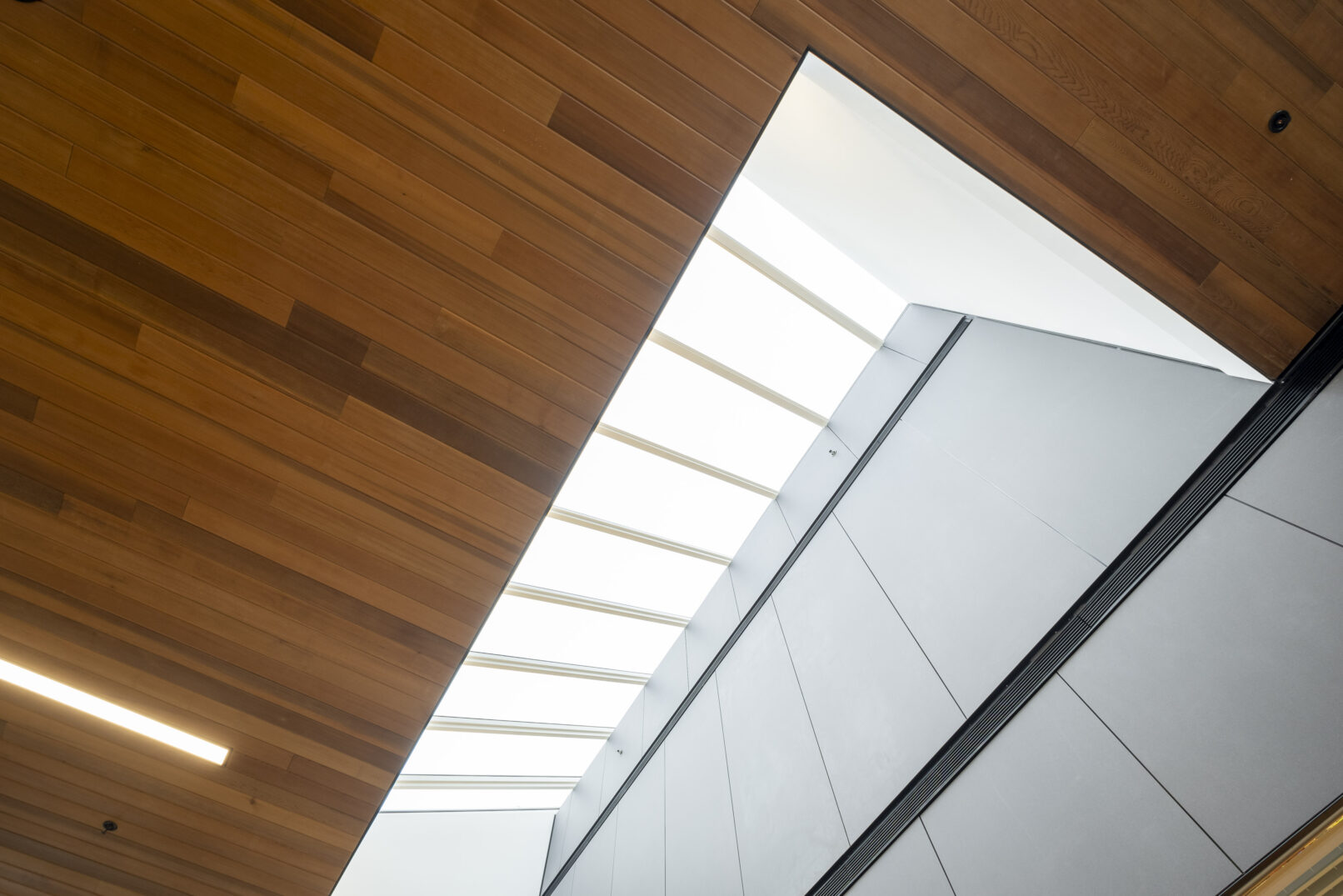 The project consisted of extremely detailed and high-end finishes such as Fibre Reinforced Concrete (FRC) Panels on the interior & exterior walls, wood parquet flooring, cedar plank soffits, wood slat ceilings, etc. JR Certus coordinated between the multiple trades involved and ensured that a proper sequencing plan was developed so that finishes installation could proceed smoothly and within construction schedule. Moreover, the FRC panels had a 5-month lead time as they were fabricated in Germany. JR Certus awarded subtrades’ contract immediately upon project start and expedited shop drawings submission to stay ahead of associated lead times to maintain schedule. The panels could not be cut onsite and had to be ordered to size. JR Certus implemented early coordination meetings and site reviews between the structural steel, window and wall panel contractor to guarantee panel dimensions early in the project and streamline schedule of work.