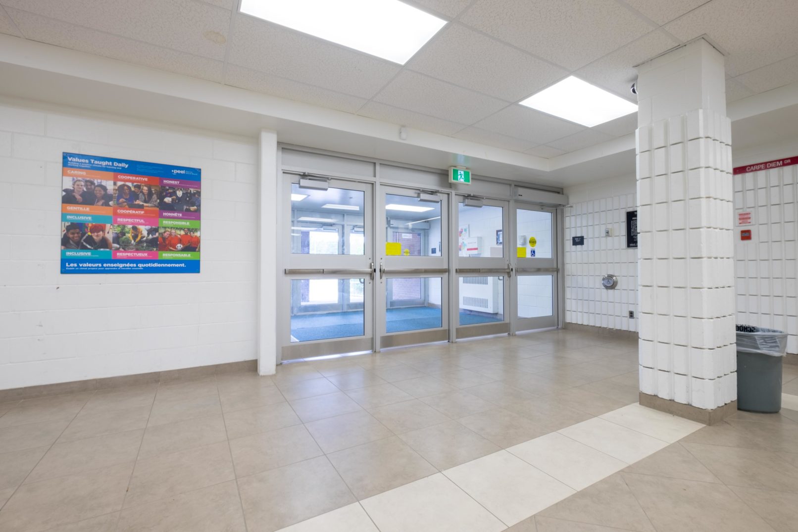 The building also received accessibility upgrades that includes fire separation, new elevator, stage lift, stair lift and the school was modified to be barrier free, including washrooms. All exterior doors and windows were replaced and the quarry tile throughout the entire corridor of the ground floor were removed and replaced with porcelain tiles. The building received extensive upgrades to the mechanical system including replacement of all air handling units.